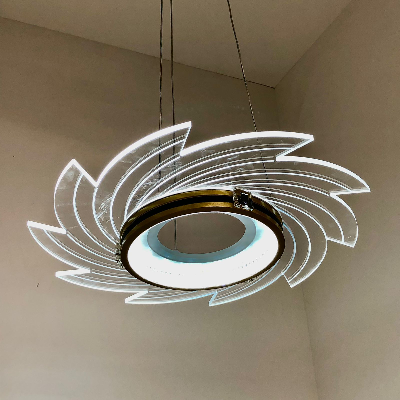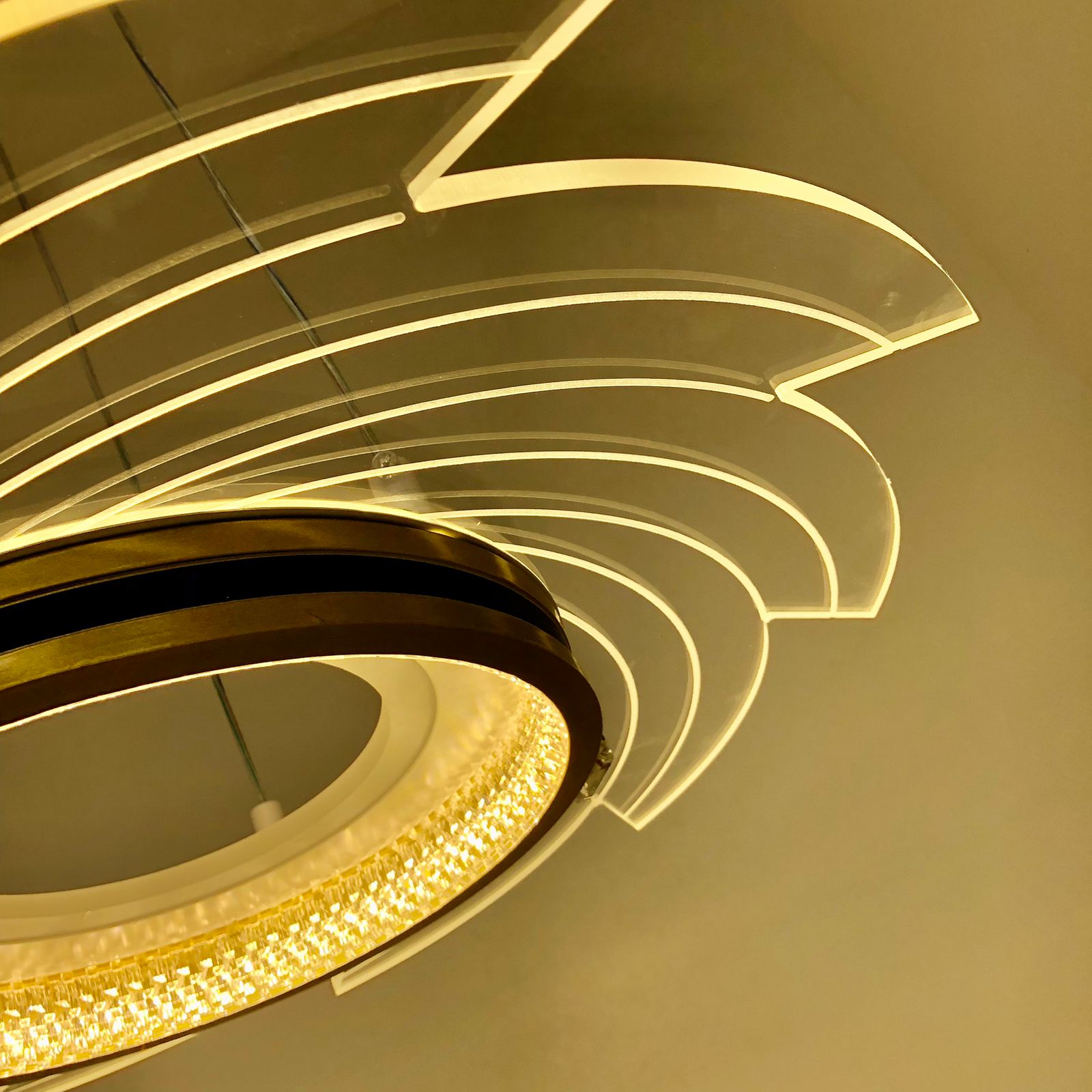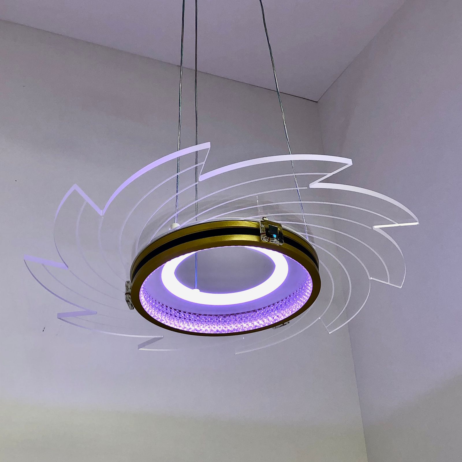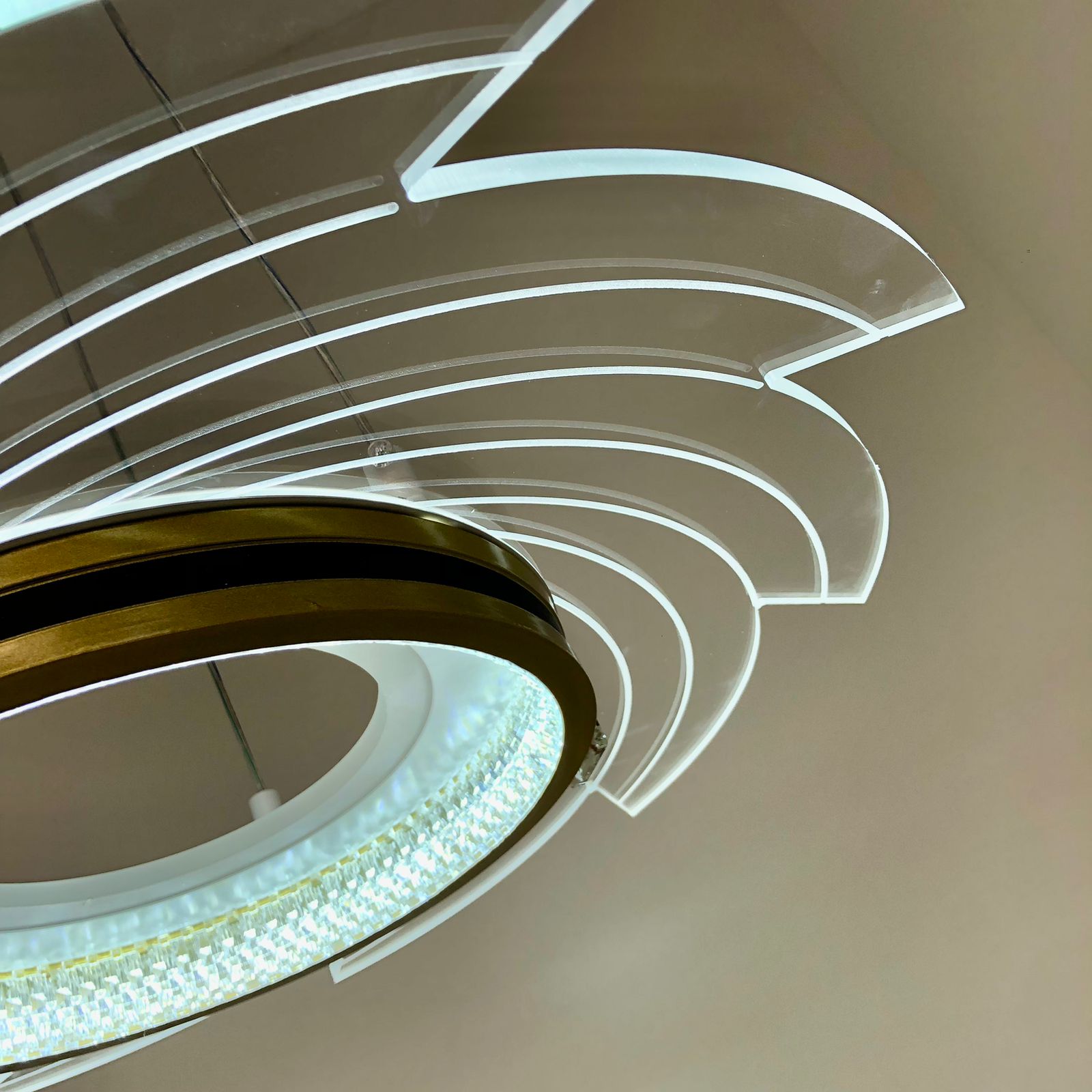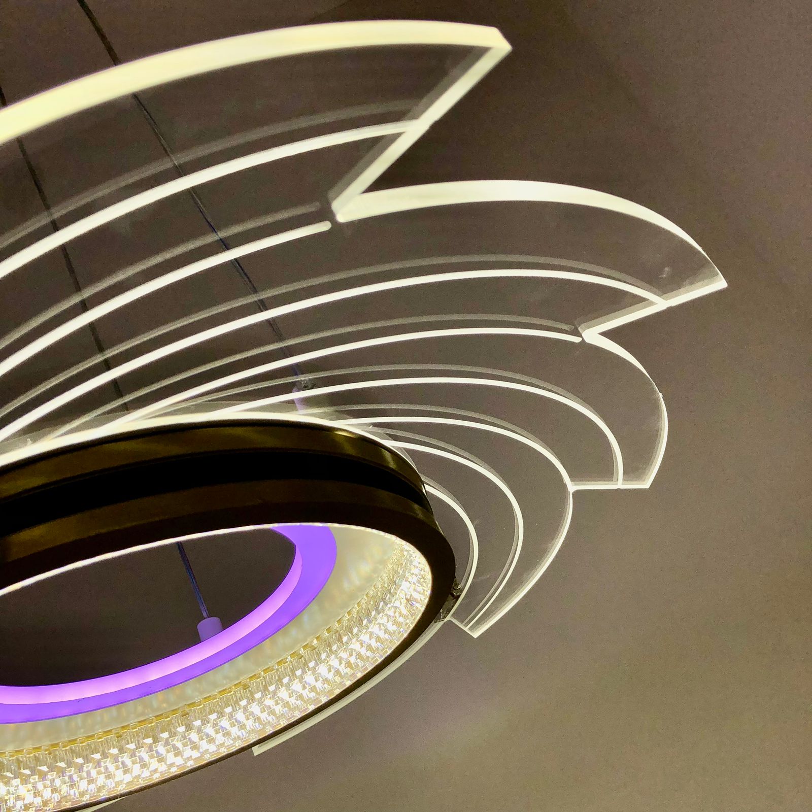 Люстра светодиодная 8011 SC отлично подойдет в помещение до 20 кв.м. Источник света в этом светильнике - встроенные светодиоды, срок службы которых составляет 30000 часов (10-15 лет). Количество ламп здесь - 1. Корпус светильника золотого цвета. Плафоны (рассеиватели) - прозрачные. Цвет свечения меняется от тёплого до холодного (2700K - 6500K), что делает светильник универсальным. Также есть дополнительная цветная подсветка. В комплекте пульт дистанционного управления (ПДУ). Гарантия на данный товар составляет 1 год.