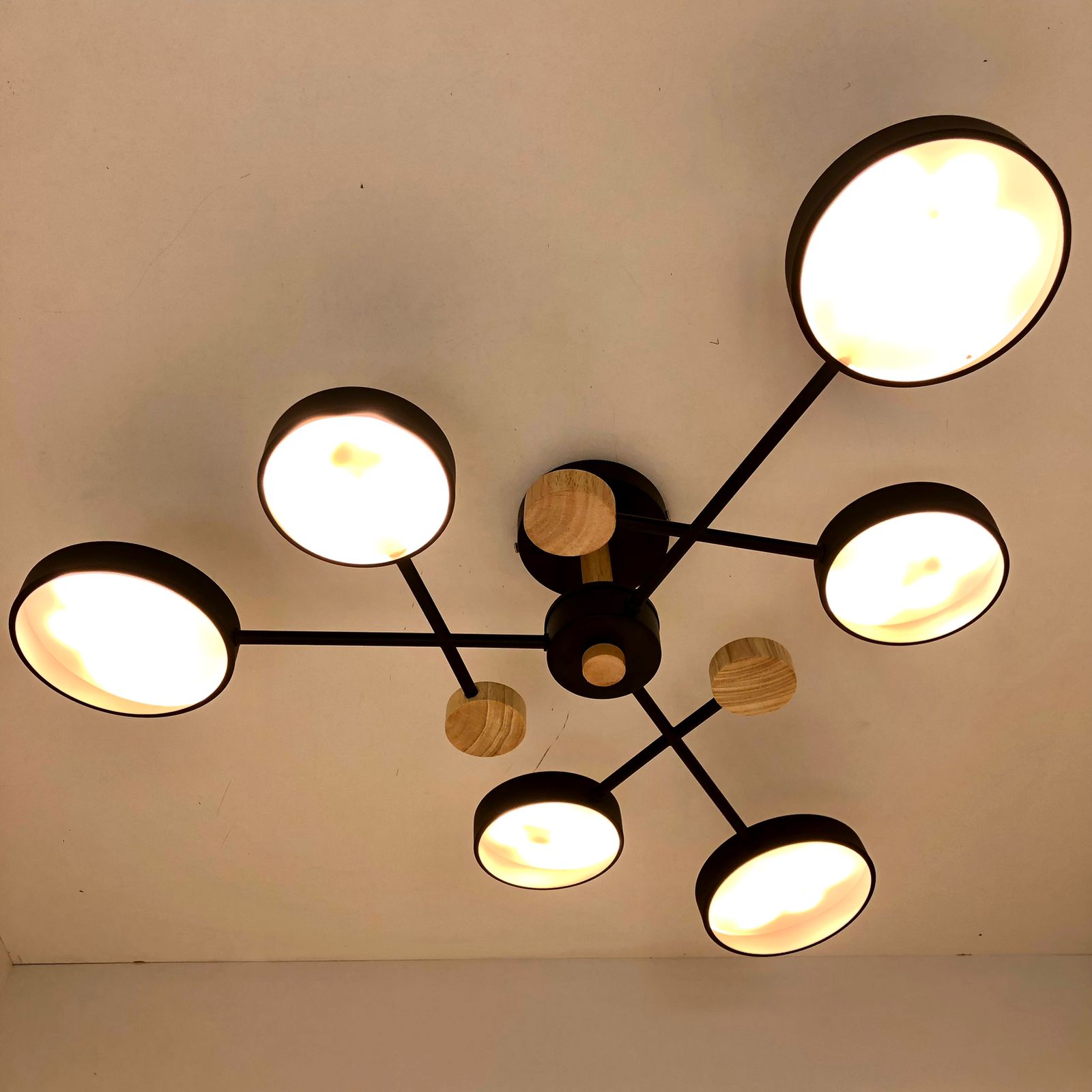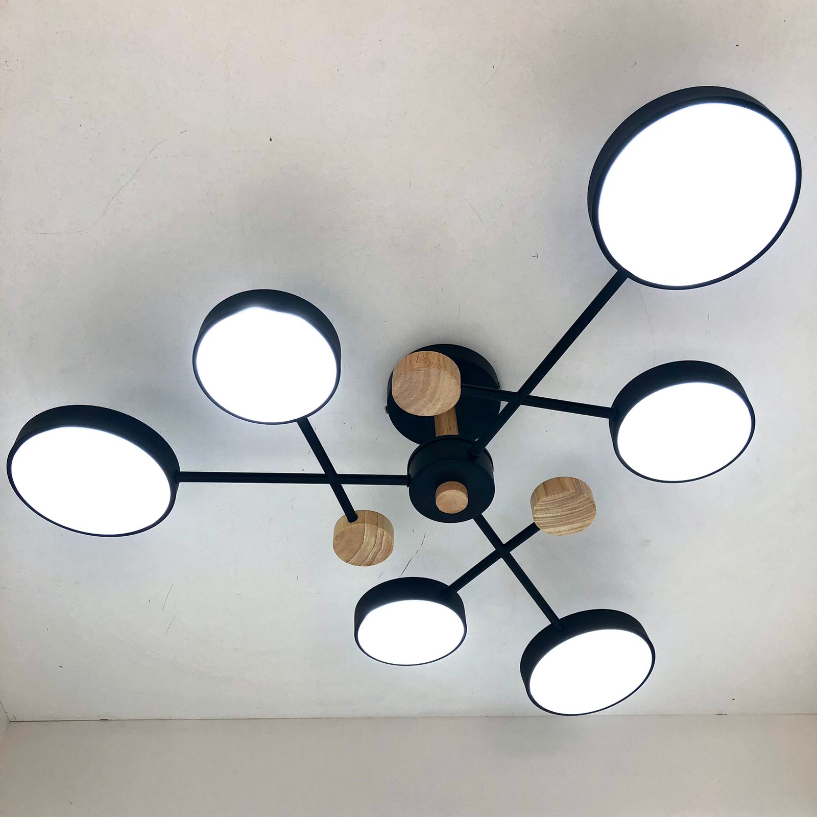 Люстра XI3221/6 BK+WOOD отлично подойдет в помещение до 25 кв.м. Источник света в этом светильнике - встроенные светодиоды, срок службы которых составляет 30000 часов (10-15 лет). Количество ламп здесь - 6. Корпус светильника черного цвета. Плафоны (рассеиватели) - черного цвета. Цвет свечения меняется от тёплого до холодного (2700K - 6500K), что делает светильник универсальным. Гарантия на данный товар составляет 1 год.
