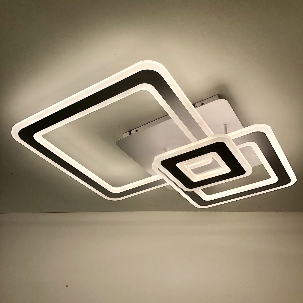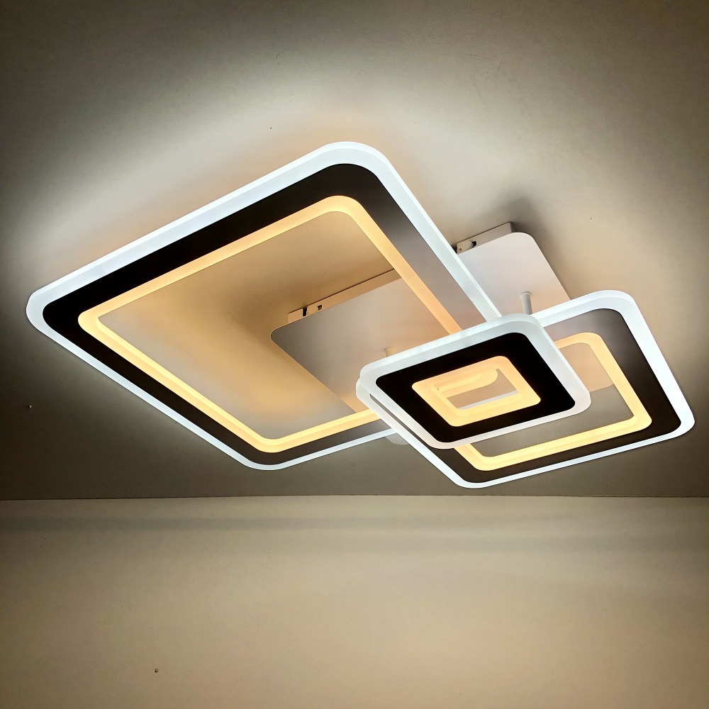 Светильник Geometria Triplex square 124W отлично подойдет в помещение до 25 кв.м. Источник света в этом светильнике - встроенные светодиоды, срок службы которых составляет 30000 часов (10-15 лет). Корпус светильника белого цвета. Плафоны (рассеиватели) - белого цвета. Цвет свечения меняется от тёплого до холодного (2700K - 6500K), что делает светильник универсальным. В комплекте пульт дистанционного управления (ПДУ). Гарантия на данный товар составляет 1 год.