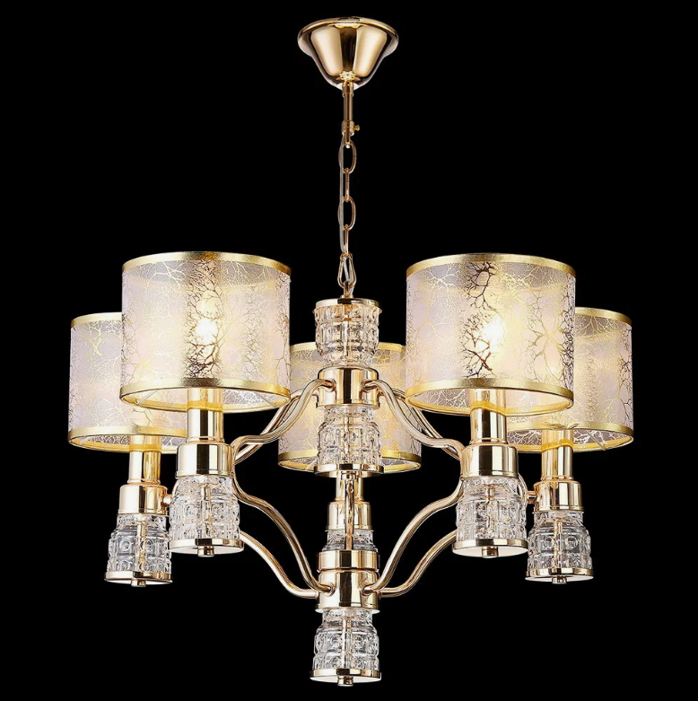 Люстра IL6216-5P-27GD. Тип цоколя - E14. Количество ламп здесь - 5. Корпус светильника золотого цвета. Плафоны (рассеиватели) - золотого цвета. Гарантия на данный товар составляет 1 год.